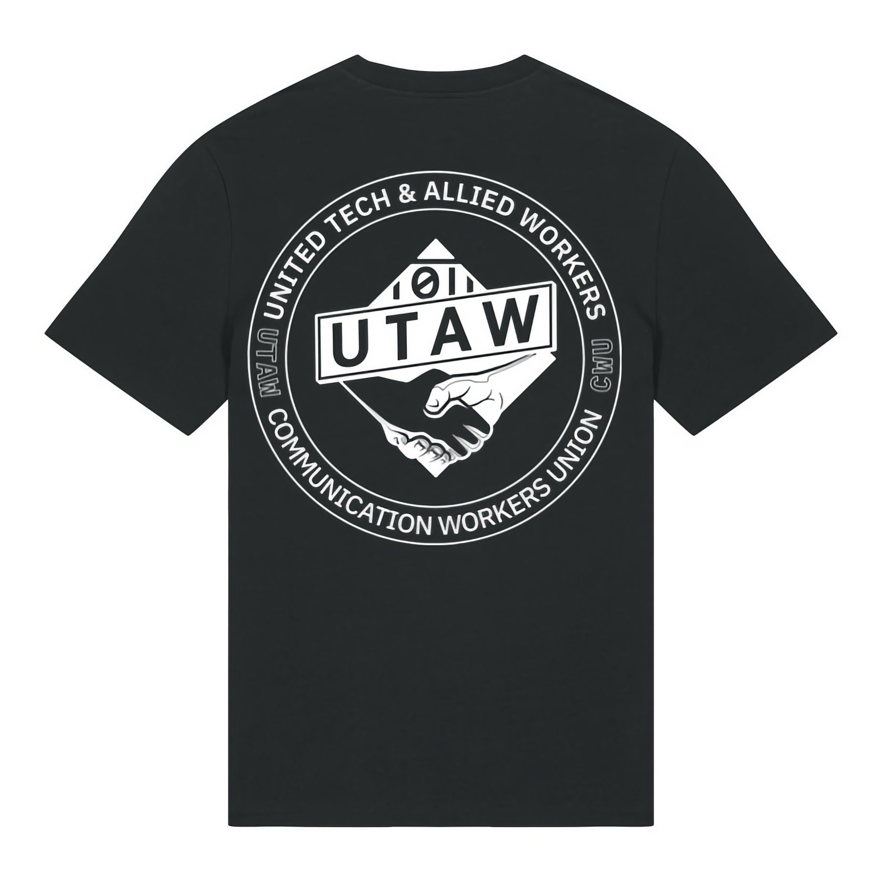 This black t-shirt has a little UTAW logo on the front, and a big one on the back, so you can show your boss that you’re a union memeber from both directions.